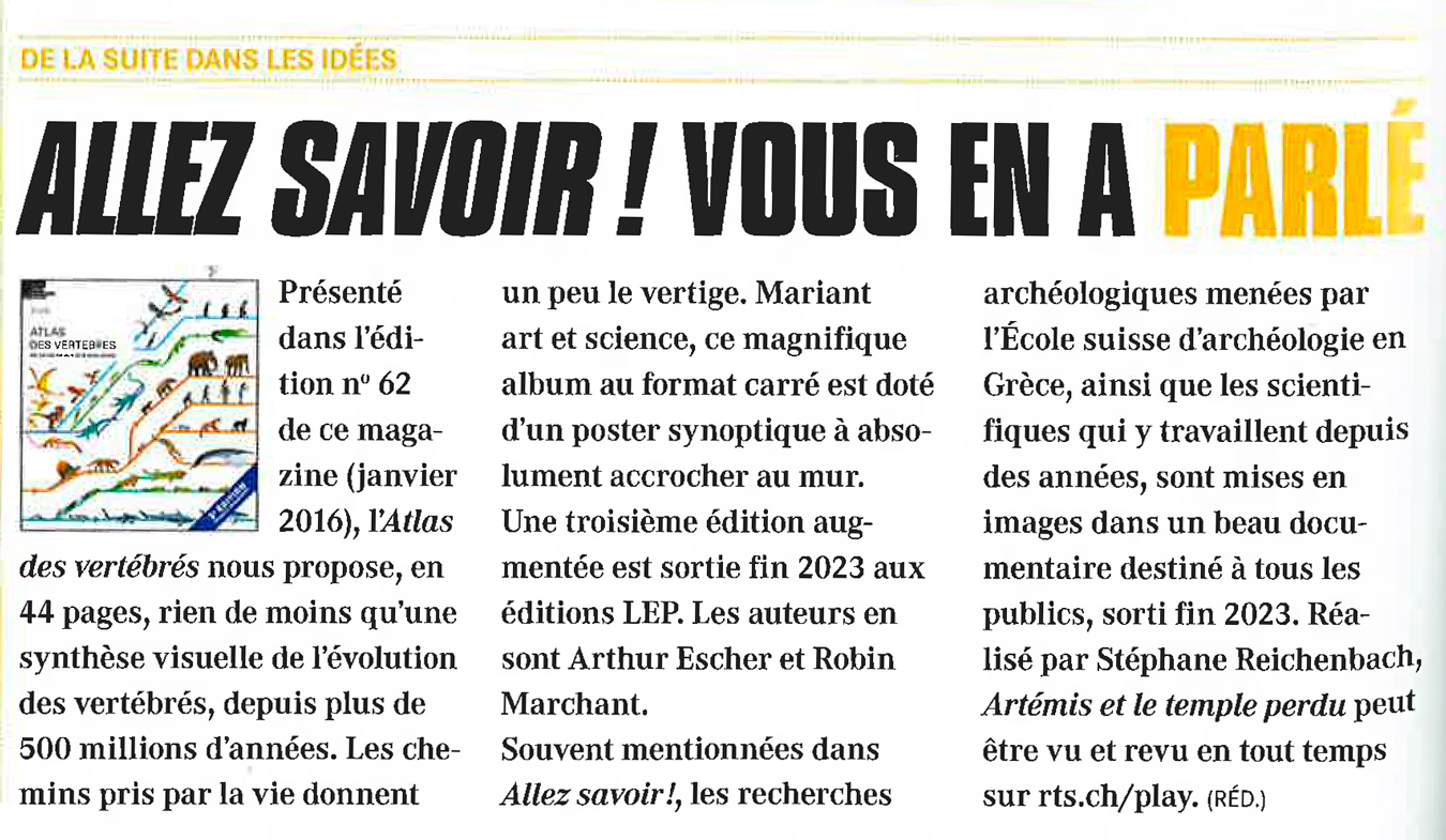 Le géologue et explorateur Arthur Escher a publié, en collaboration avec Robin Marchant, L’Atlas des vertébrés: de leurs origines à nos jours. Portrait d’un vertébré pas comme les autres.