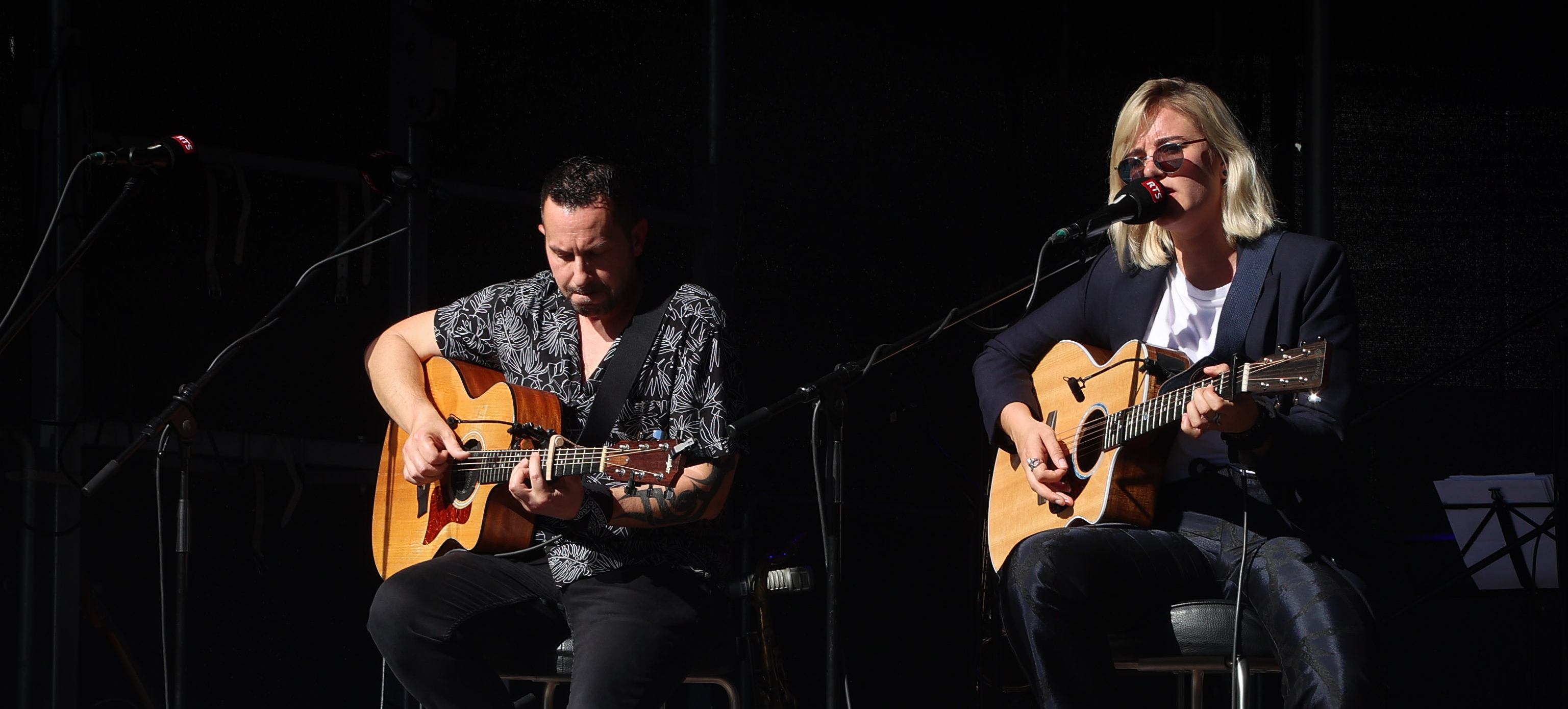 Stéphane en concert avec son guitariste, Stéphane Rambaud, lors des portes ouvertes de la RTS 2022, à Lausanne (Vaud)